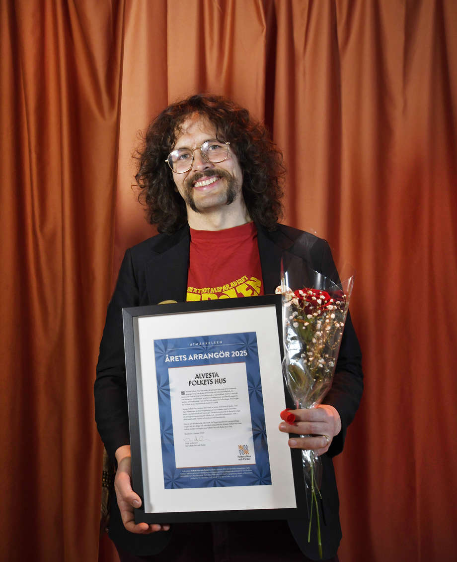 – Tusen tack för denna utmärkelse som verkligen värmer våra Folkets Hushjärtan! Vi kämpar hårt för att hålla liv i kulturen i Alvesta och vi vill göra Alvesta och Småland lite roligare och trevligare. Vi vill att Folkets Hus ska vara en mötesplats där alla känner sig välkomna och där allt kan hända. I över 70 år har huset varit navet i Alvestas kulturliv och nu satsar vi framåt mot en bättre framtid med mer spännande kultur och mer solidaritet. Om vi bara jobbar tillsammans är allt möjligt., säger Jacob Hector, verksamhetsledare Alvesta Folkets Hus.