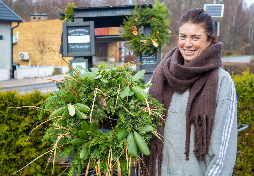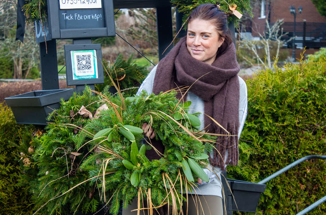 Detta gör att hon kan skapa kransar och buketter året runt, inte bara i högsäsong. Under hösten är det gravdekorationer. Under vintern juliga kransar, som ofta är gröna och naturnära, med några röda inslag. Dessutom har hon även på senare tid börjat göra buketter av torkade blommor.