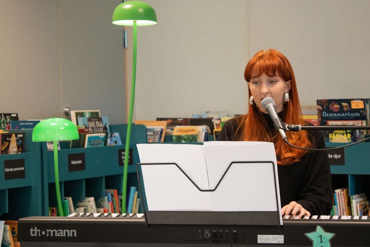Under invigningen på kvällen fick besökarna lyssna till sång och musik av Rut Folkesson, som är tidigare elev på Skatelövsskolan. Foto: Josefin Petersson