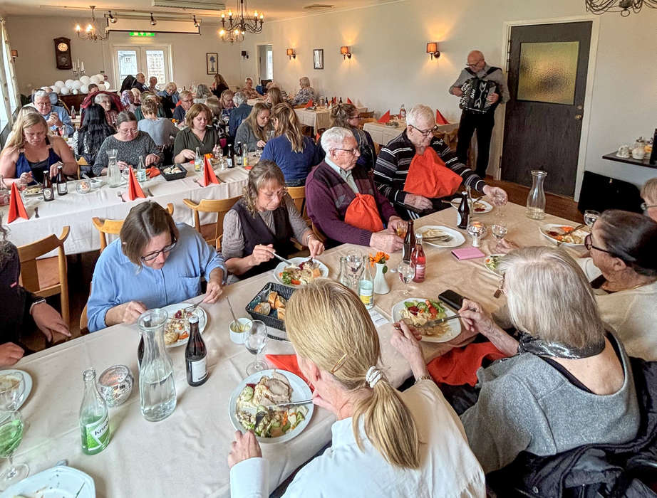 Efter talen fortsatte firandet med fika, bildvisning och mingel. På väggarna hänger fortfarande konstnären Anne-Marie ”Bia” Nilssons tavlor, målade redan vid invigningen för trettio år sedan.