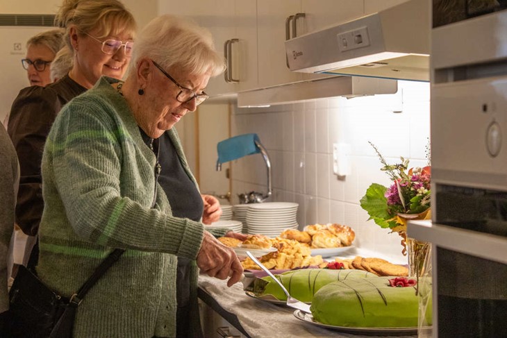 I Askens lokaler bjöds det på fika när gamla medarbetare, boende och samarbetspartners samlades för att fira med mingel. Foto: Josefin Petersson