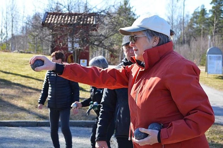 Alla är välkomna till bouleträningarna, oavsett erfarenhet eller livssituation. Syftet är att skapa en öppen mötesplats där alla kan vara med. Foto: Cornelia Nilsson