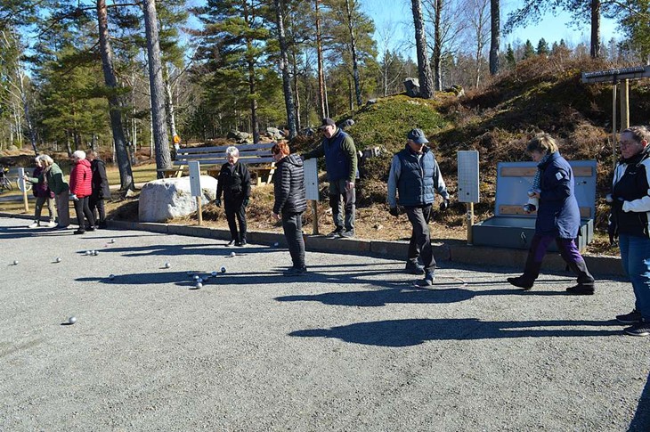De är vanligtvis mellan 25 och 30 personer med vid varje träning. När Lokaltidningen är på besök är det inget undantag. Boulebanan är full med pensionärer som spelar.