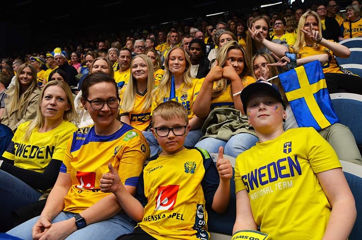 Läktarna var fyllda av 1 836 personer klädda i blågula tröjor och accessoarer. Stämningen var på topp. Besökare hade kommit från hela Småland och till och med från Skåne för att se matchen. Det var aldrig någon tvekan i Craft Arena i Kosta. Redan i halvtid ledde Sverige med 20–9, och när slutsignalen ljöd hade marginalen vuxit till hela 21 mål.