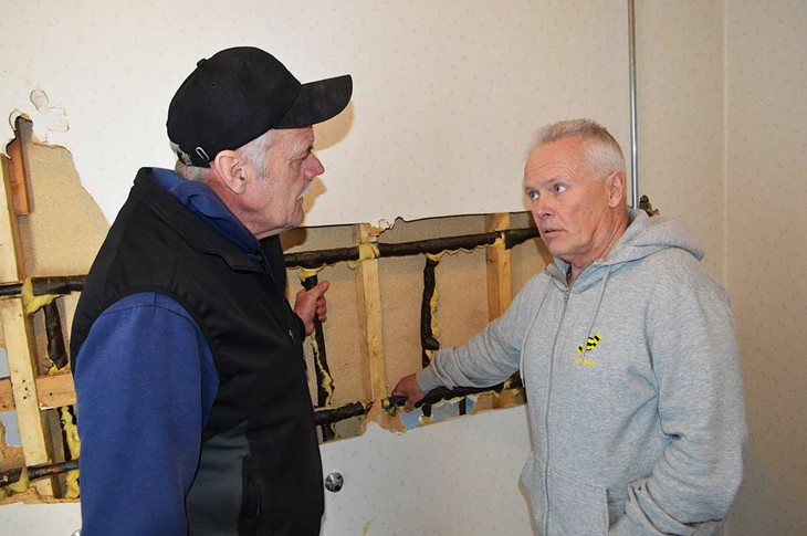 På verandan till klubblokalen som snart ska bort är det rörigt. Två toalettstolar står mot väggen, ett handfat väntar på att bäras bort och taket över verandan är redan nedplockad. Men jobbet gör inte sig självt. Sedan start har Leif, Anders och andra eldsjälar arbetat ideellt för att projektet ska röra sig framåt.