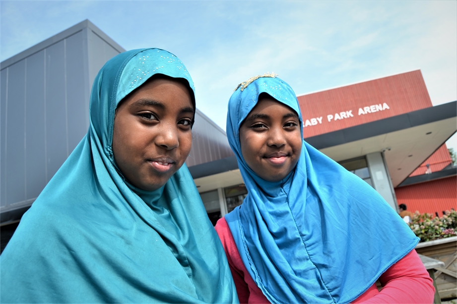 - Jag älskar min syster och mina föräldrar, sa 8-åriga Najma Ali och tvillingsystern Nawal nickade instämmande. Foto: Hans Nilsson