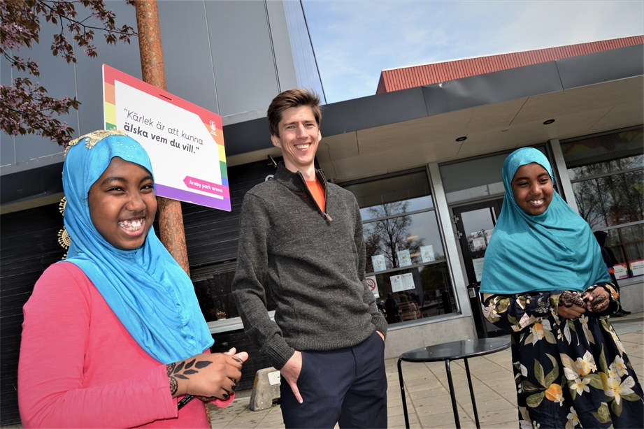 - Pride och budskapet att man får älska den man vill älska är en viktig fråga i samhället. Alla i Araby gillar inte Pride. Det har vi märkt när vi pratar med en del killar i tonåren, de kan säga till oss att Pride är haram, en synd. Men hos barnen märker vi ju inget sådant, förklarar Joel Käll Karlsson.