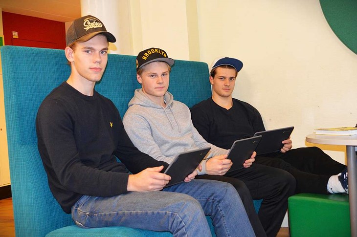 Hockeykillarna Carl Rasmusson, Hugo Yngsell och Fabian Nilsson i årskurs två beskriver lumpen som intressant. Foto: Cornelia Nilsson
