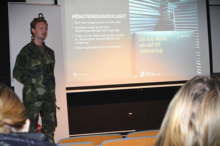 – Vi vill sprida information så att ungdomarna vet vilka skyldigheter de har och så att det inte kommer som en chock. Man behöver inte vara intresserad av Försvarsmakten för att kallas till mönstring. På ett sätt tvingas de in i processen, och då har vi ett ansvar att ge eleverna i tvåan den information de behöver för att känna sig förberedda, säger Karl Lindsten.