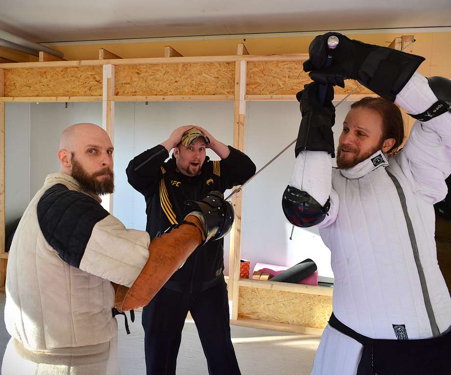 Marko Korbun tar upp svärd efter svärd. Och det är inte någora tunna böjbara som man kan har sett på tv någon gång, utan de är långa, korta, i trä och i metall. Tillsammans med Sascha Hellberg driver de en klubb där de utövar kampsporten HEMA, Historical European Martial Arts.