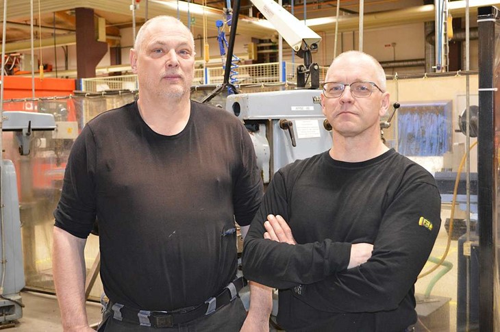 Lärarna Mikael Persson och Glenn Haag har bred kompetens och berättar att det är i dessa lokaler som Wasaeleverna brukar öva på de praktiska momenten som till exempel att svetsa. Foto: Cornelia Nilsson