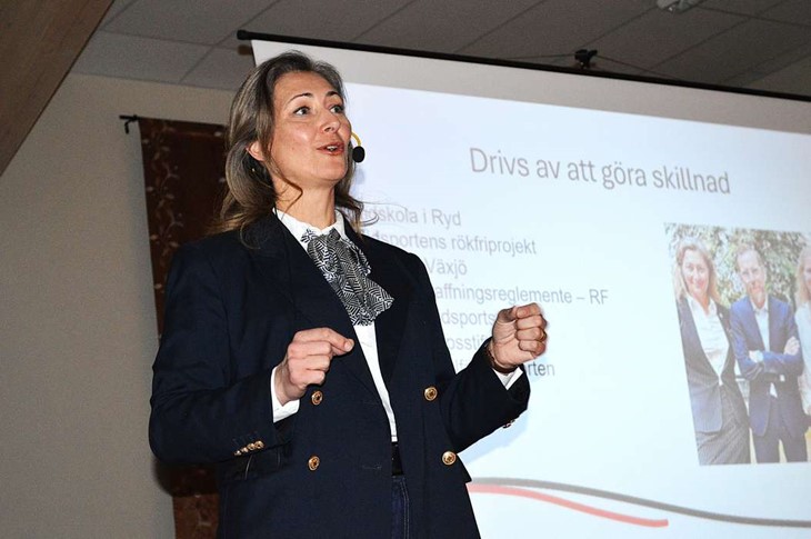 Den tidigare ordföranden för Svenska Ridsportförbundet, som lämnade sitt uppdrag nyligen efter tre år på posten, återvände till rötterna. Uppvuxen i Ryd, numera bosatt i Gemla i Växjö kommun, talade hon varmt om hur hennes driv och engagemang formades i ett samhälle där föreningslivet bär bygden.