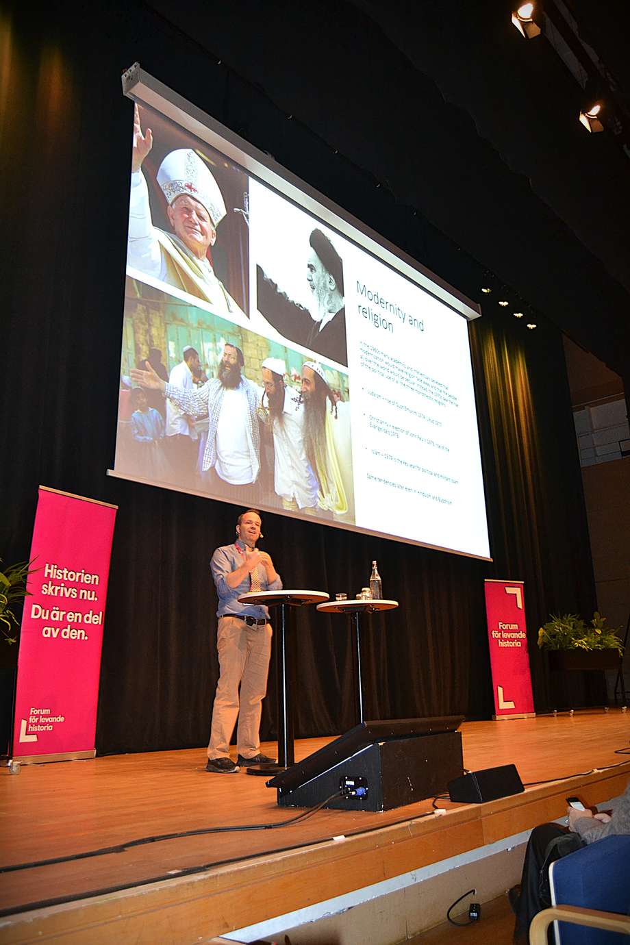 Anders Persson föreläste om Israel-Palestina-konfliktens polariserande effekter vid konferensen för lärare och skolledare på Växjö konserthus som Forum för levande historia ordnade den 4 december.