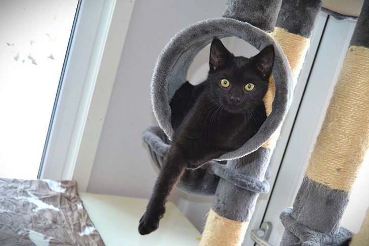 Kattungen Ash verkar trivas på Djurskyddet Sigfrids katthem. Foto: Hans Nilsson