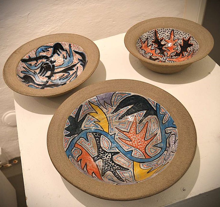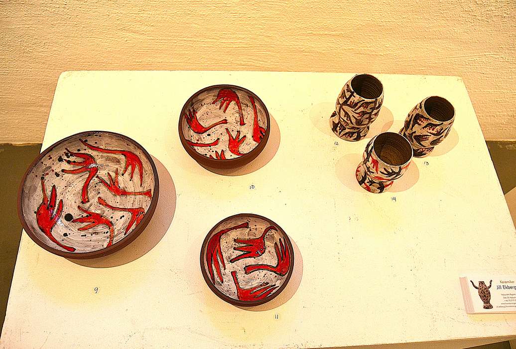 Jill Ekberg från Vejbyslätt i Skåne visar sin keramik och Serge Constantien från Växjö ställer ut måleri.