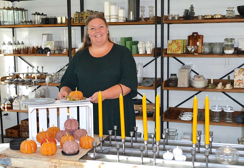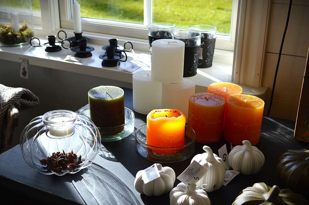 I butiken samsas pumpor i olika former och material med ljuslyktor som bara väntar på att sprida sitt sken i höstmörkret. Snart fylls rummen av besökare – något Bodil ser fram emot.