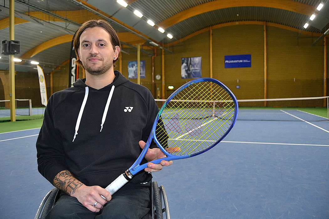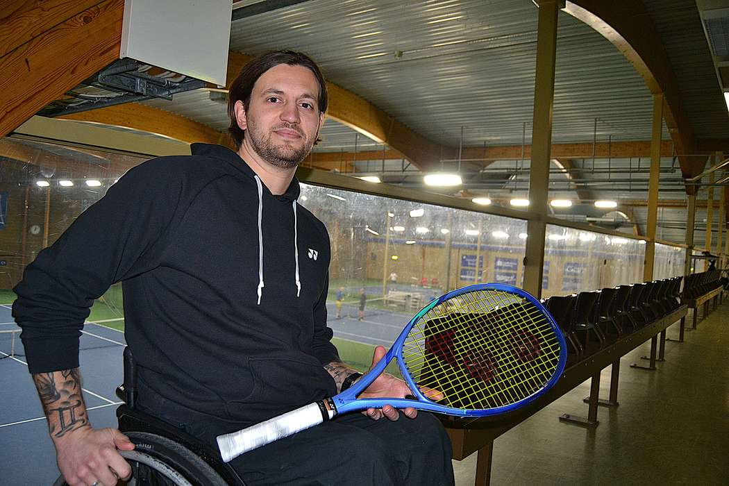 - Tennisen är allt för mig, idrotten och min inställning har räddat mig, säger 28-årige Hampus Linder Olofsson, som jobbar i tennisshopen i Strandbjörkshallen.