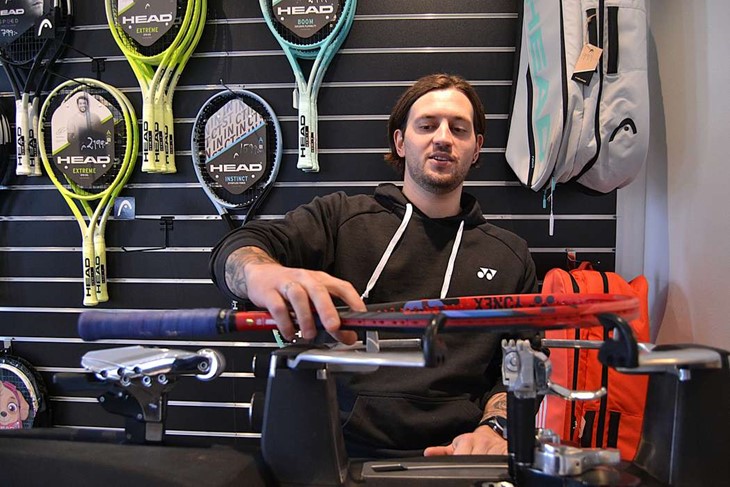 Hampus Linder Olofsson jobbar i tennisshopen i Strandbjörkshallen, tränar tennis varje dag och är själv coach åt andra. Tennisen allt för honom. Foto: Hans Nilsson