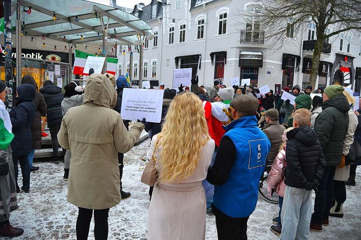 I lördags hölls en manifestation i Växjö till stöd för Irans folk och deras kamp för mänskliga rättigheter, frihet och demokrati. Foto. Hans Nilsson