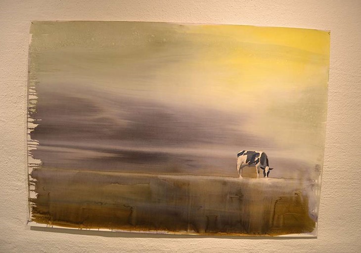 Målningarna har fina natur- och djurmotiv som den här betande kon. Foto: Hans Nilsson