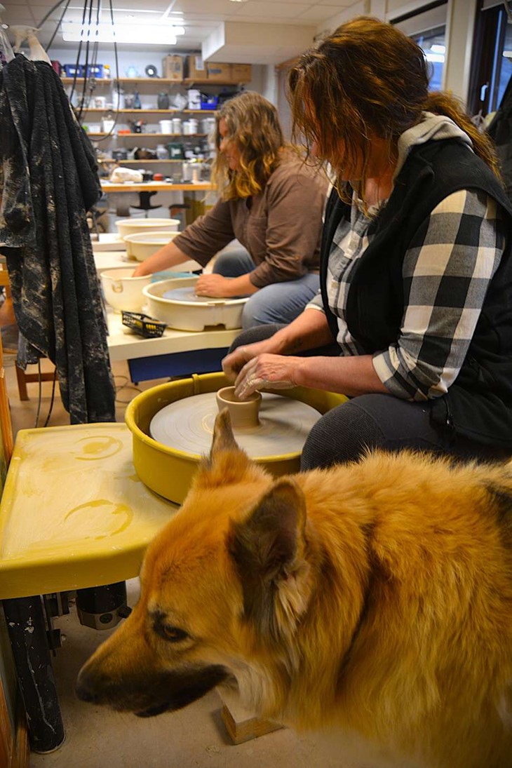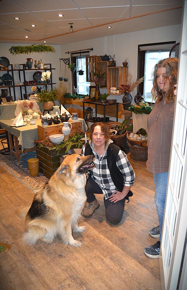 På Växjö keramikcenter finns också Lenas hund Chloe, en nio år gammal american wolfdog. Foto: Hans Nilsson