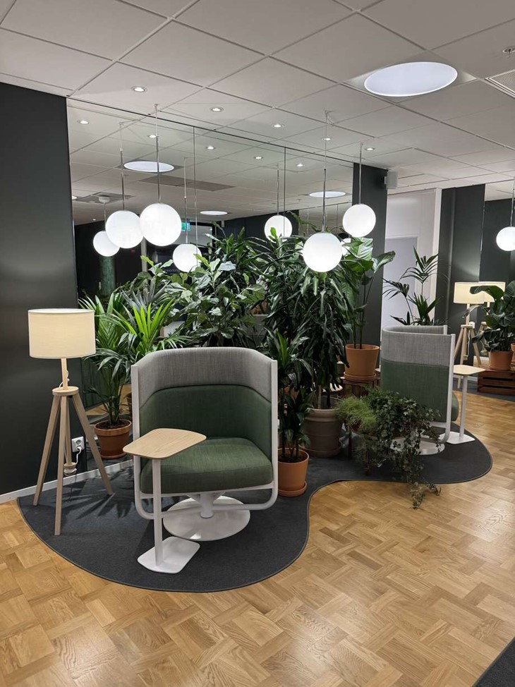 Man har använt tydliga materialval, inslag av grönska och en design som tar hänsyn till hur människor arbetar. Foto: Pressbild