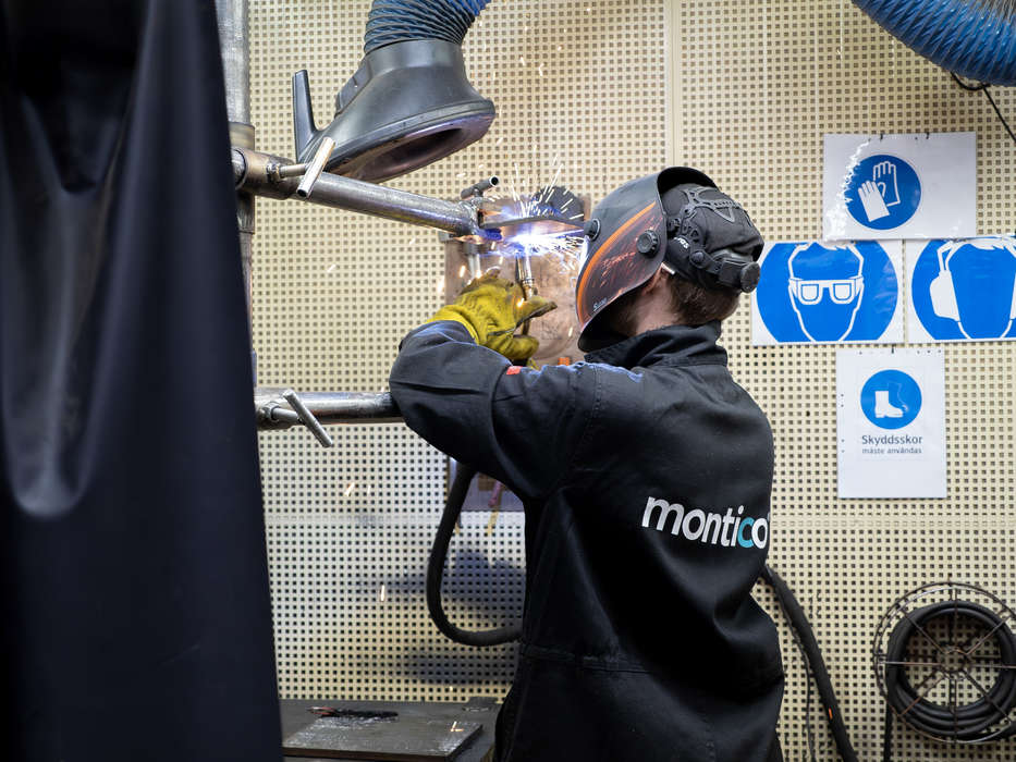 - Det är en kort och intensiv utbildning som leder till jobb, men man måste ju ha intresset för att svetsa, säger Marcus Sjöqvist på Montico i Växjö.