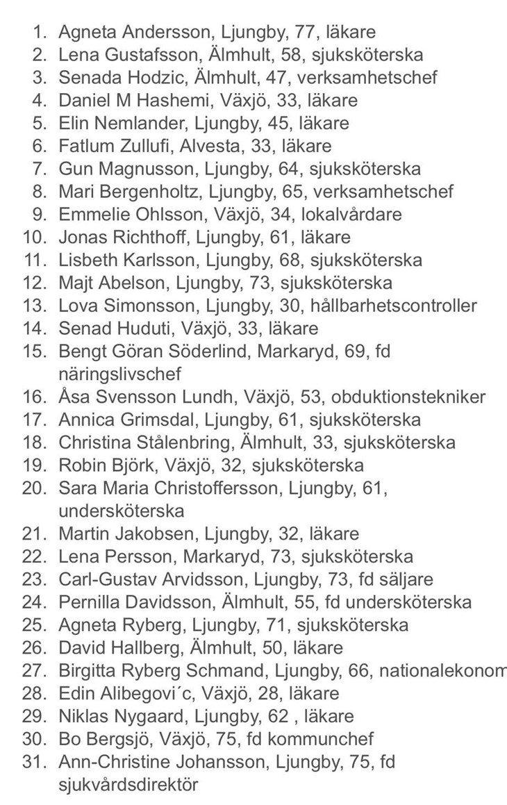 KRONOBERG. Det nybildade partiet Vård i Kronoberg har nu presenterat namnen på de 31 kandidater som ställer upp i höstens regionval.