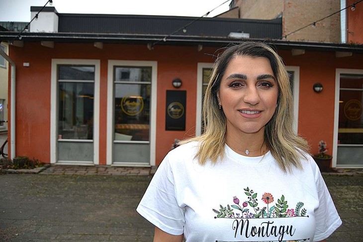 - Jag känner mig hemma i Växjö. Det är en stad som växer och vi tycker att det är lugnt och skönt här, säger Marjan Attarian som bland annat serverar persiskt svart te på Montagu Sandwich Café. Foto: Hans Nilsson