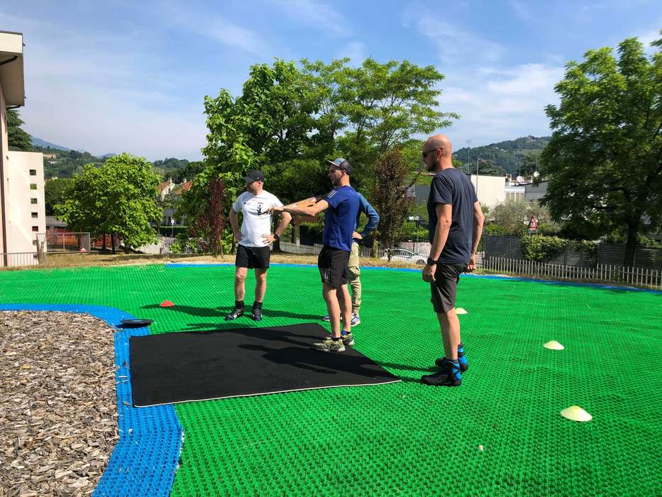Det betyder att man kan åka med vanliga skidor även på sommaren. Man kan även lägga konstsnö ovanpå kombisnö-materialet om man behöver det.