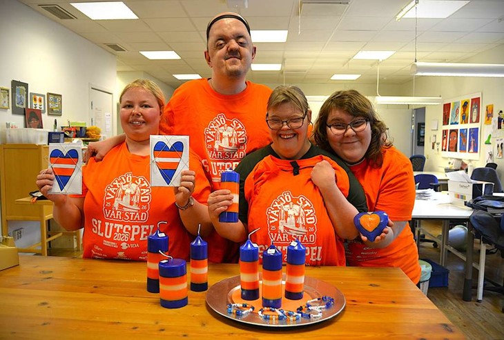 - Vi ringde till Textilgruppen direkt när vi fick veta om tävlingen. De gjorde en bonad, vimplar och grytlappar i Lakers färger och vi satte igång och gjorde stearinljus, kort och armband i samma färger, berättar Jennie Jaksic, omsorgsassistent på Papperian.