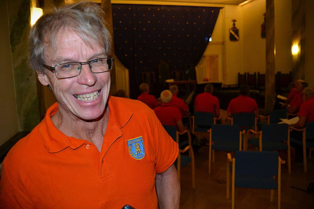 Körledaren Peter Nilsson trivs med grabbarna i Växjö Manskör - Det är ett gäng vuxna pojkar, säger han. Foto: Hans Nilsson